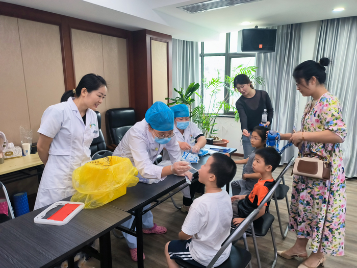 在知識講座后,緊接著開展了專業(yè)口腔健康義診活動。牙防所的專家們?yōu)橛行枨蟮膯T工及子女進(jìn)行了詳細(xì)的口腔檢查,耐心解答了各種疑問,并針對不同個體的情況給出了個性化的口腔健康建議和護(hù)理方案。同時,專家還向大家傳授了家庭口腔護(hù)理技巧,強(qiáng)調(diào)了家庭成員間互相監(jiān)督和支持的重要性。