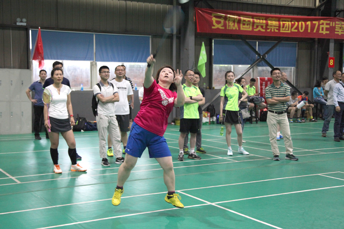 ? ? 5月24日至25日,國貿(mào)集團(tuán)工會在合肥市“夠運(yùn)動”羽毛球館舉辦了2017年“幸福國貿(mào)”杯羽毛球比賽,共有9支代表隊(duì)80多名選手參加了比賽。 ?公司派出了董艷、王玲、孫曉慶、楊琛、王猛組成的代表隊(duì)參賽。