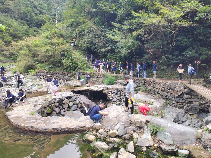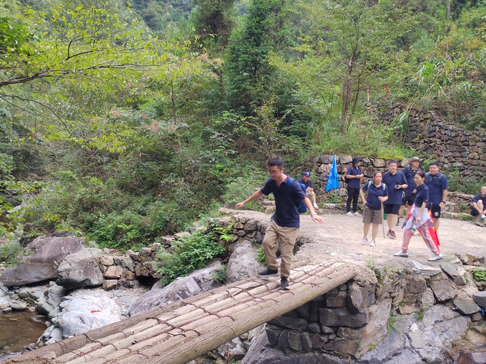 休整一晚后,第二天一早我們便乘車來到了徽杭古道的起點(diǎn)。徽杭古道蜿蜒于崇山峻嶺之間,猶如一條歷史的紐帶,連接著過去與未來。當(dāng)我們踏上這片古老的土地時(shí),心中都充滿了期待與挑戰(zhàn)。從起點(diǎn)出發(fā),大家邁著堅(jiān)定的步伐,眼神中透露出對(duì)未知旅程的好奇與勇敢。
