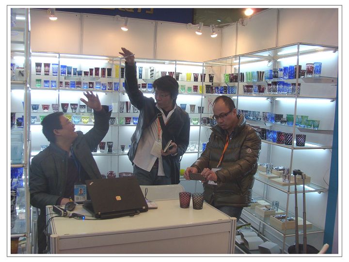 ?? 雖然是傳統(tǒng)市場傳統(tǒng)產(chǎn)品,參展人員還是做足了功課。從樣品的準(zhǔn)備到展位的布置,再到現(xiàn)場的談判,每一個環(huán)節(jié)都展現(xiàn)出業(yè)務(wù)員的獨具匠心。此次帶去的針對日本市場的刻花玻璃制品深受客人喜愛。