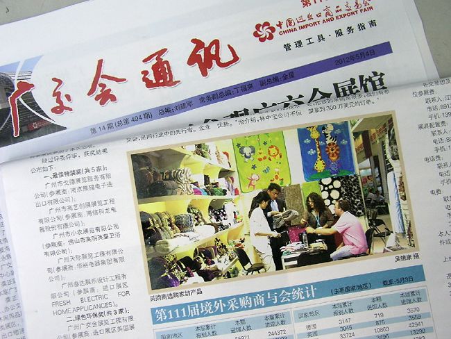 ??例如趙克勇此次參展的樣品,新穎,獨(dú)特,符合市場(chǎng)潮流,并結(jié)合產(chǎn)品在展位設(shè)計(jì)、樣品擺放上下了很大功夫,一改以往中規(guī)中矩的風(fēng)格,展位整體溫馨、活潑,不僅吸引了更多客戶前來(lái)洽談,還引起了大會(huì)記者的強(qiáng)烈興趣和充分肯定,洽談圖片被登在了影響廣泛的廣交會(huì)通訊上。