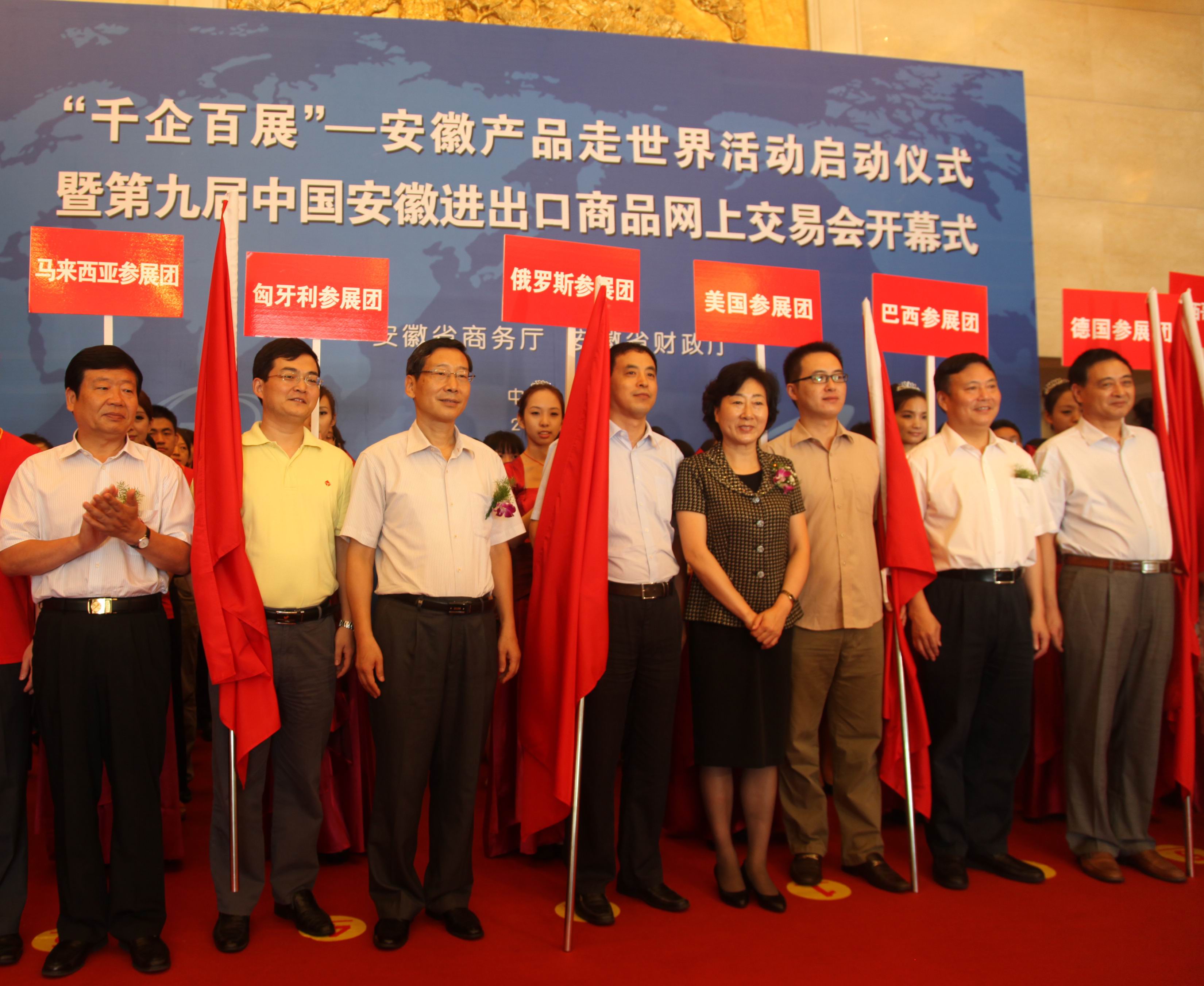 花建慧副省長親臨活動現(xiàn)場,并與省政府副秘書長張武揚、省商務(wù)廳廳長方西屏、合肥海關(guān)關(guān)長趙龍池、省財政廳副廳長左俊共同為各境外參展團組出發(fā)授旗,啟動第九屆中國安徽進出口商品網(wǎng)上交易會開幕按鈕。我司代表何峰作為美國團代表接受了花建慧副省長的授旗。商務(wù)廳副巡視員王曉陽主持活動儀式,副廳長張丹寧代表主辦方對活動背景和內(nèi)容進行了簡要介紹。